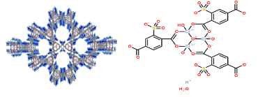 2) 配体上裸露的磺酸基可进一步衍生;可用于离子探针或离子膜材料