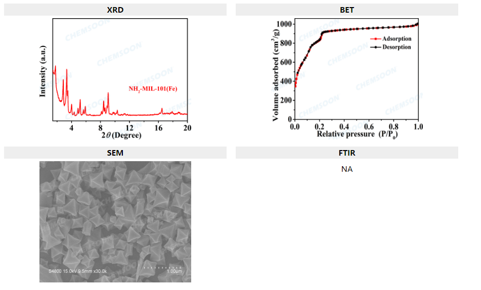 1) NH2-MIL-101(Fe)在空气中较稳定,在酸性水溶液中逐渐分解。