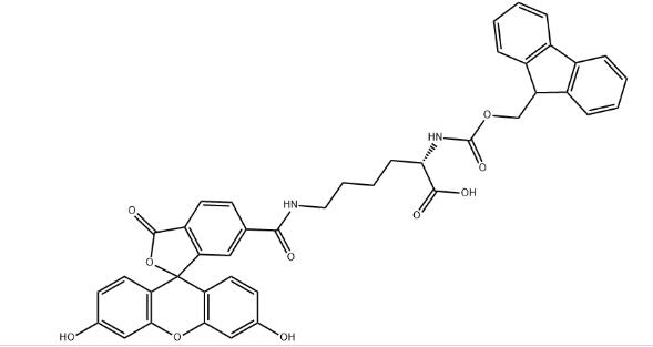 苏州北科纳米科技有限公司生产销售“FMoc-Lys(6` -FAM) -OH,CAS号:1266666-04-9”“FMOC-Lys(5/6-FAM),N6-[(3,6-二羟基-3-氧代螺[异苯并呋喃-1(3H),9-[9H]吨]-6-基)羰基]-N2-[芴甲氧羰基]-L-赖氨酸,分子式:C42H34N2O10,分子量:726.73”,该产品仅用于科研,如果需要请联系我们