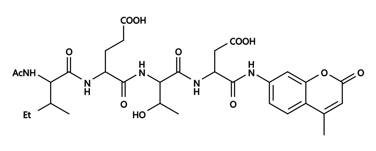 苏州北科纳米科技有限公司生产销售“Ac-IETD-AMC|Ac-IETD-7-氨基-4-甲基香豆素”“Ac-Ile-Glu-Thr-Asp-7-Amino-4-trifluoromethylcoumarin,分子量:675.68,激发(nm):341,发射(nm):441,Ac-IETD-AMC是包含乙酰基(Ac)部分的荧光半胱天冬酶8 /粒酶B底物。该底物被胱天蛋白酶8水解,产生高荧光的7-氨基-4-甲基香豆素(AMC)。”,该产品仅用于科研,如果需要请联系我们