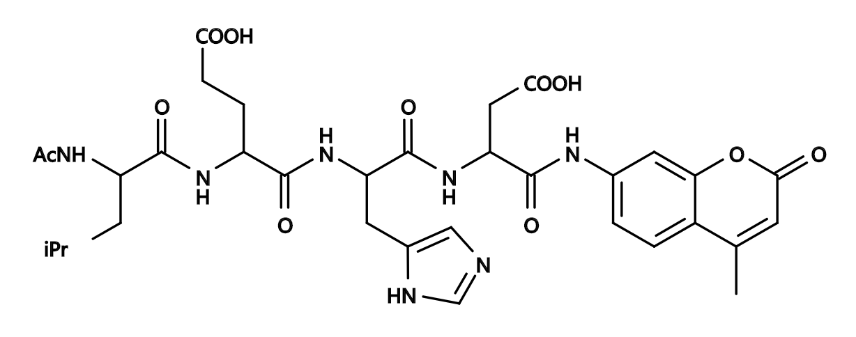 苏州北科纳米科技有限公司生产销售“Ac-LEHD-AMC|CAS292633-16-0|Ac-LEHD-7-氨基-4-甲基香豆素”“Ac-Leu-Glu-His-Asp-7-Amino-4-trifluoromethylcoumarin,分子量:711.72,激发(nm):341,发射(nm):441,Caspase 9是半胱氨酸蛋白酶caspase家族CED-3亚家族的成员,在凋亡的执行阶段起着至关重要的作用。这些酶对于天冬氨酸残基后的裂解键具有主要的一级特异性。”,该产品仅用于科研,如果需要请联系我们