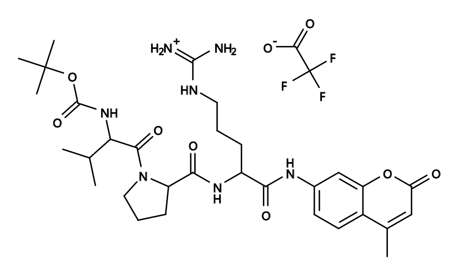苏州北科纳米科技有限公司生产销售“BOC-Val-Pro-Arg-AMC|BOC-Val-Pro-Arg-7-氨基-4-甲基香豆素”“BOC-Val-Pro-Arg-7-Amino-4-trifluoromethylcoumarin,分子量:741.75,激发(nm):341,发射(nm):441,BOC-Val-Pro-Arg-AMC是α凝血酶的敏感荧光底物。”,该产品仅用于科研,如果需要请联系我们