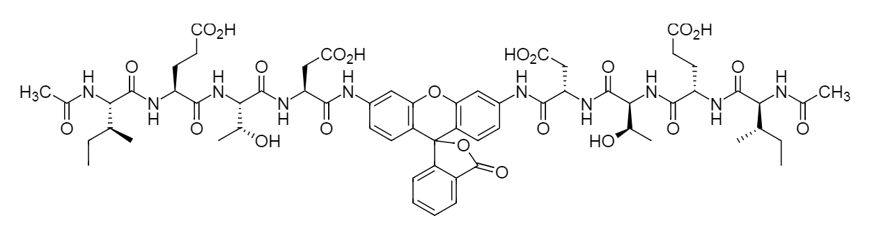 苏州北科纳米科技有限公司生产销售“(Ac-IETD)2-R110”“分子量:1331.34,激发(nm):500,发射(nm):522,由于高度纯化的若丹明110(R110)衍生的底物被锁定为内酯构型,因此它们是无色且无荧光的。半胱天冬酶对R110肽的切割产生强荧光的R110,可以在510-530 nm处用488 nm的激发进行荧光检测,这是荧光仪器中常用的激发光源。”,该产品仅用于科研,如果需要请联系我们
