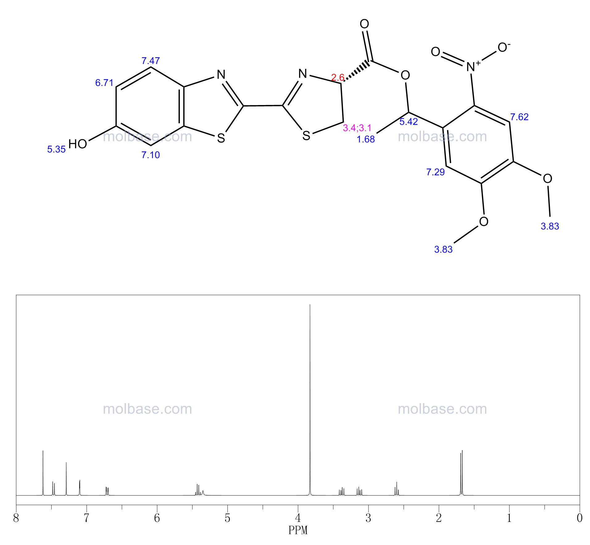 1-(4,5-二甲氧基-2-硝基苯基)乙基 (4R)-2-(6-羟基-1,3-苯并噻唑-2-基)-4,5-二氢-1,3-噻唑-4-羧酸酯,CAS:223920-67-0